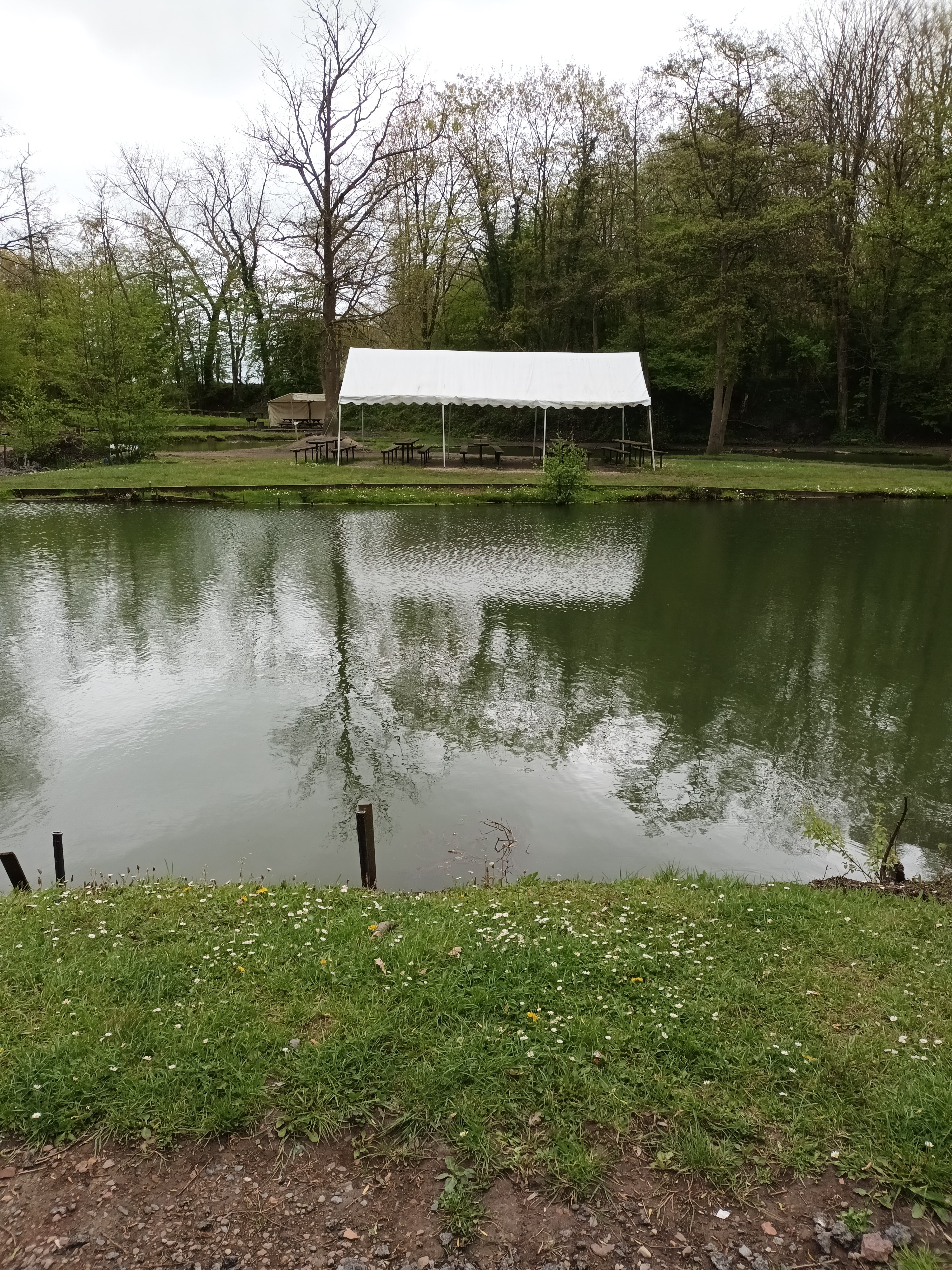 Super l'emplacement de l'étang et les tables et tonnelles à disposition super !