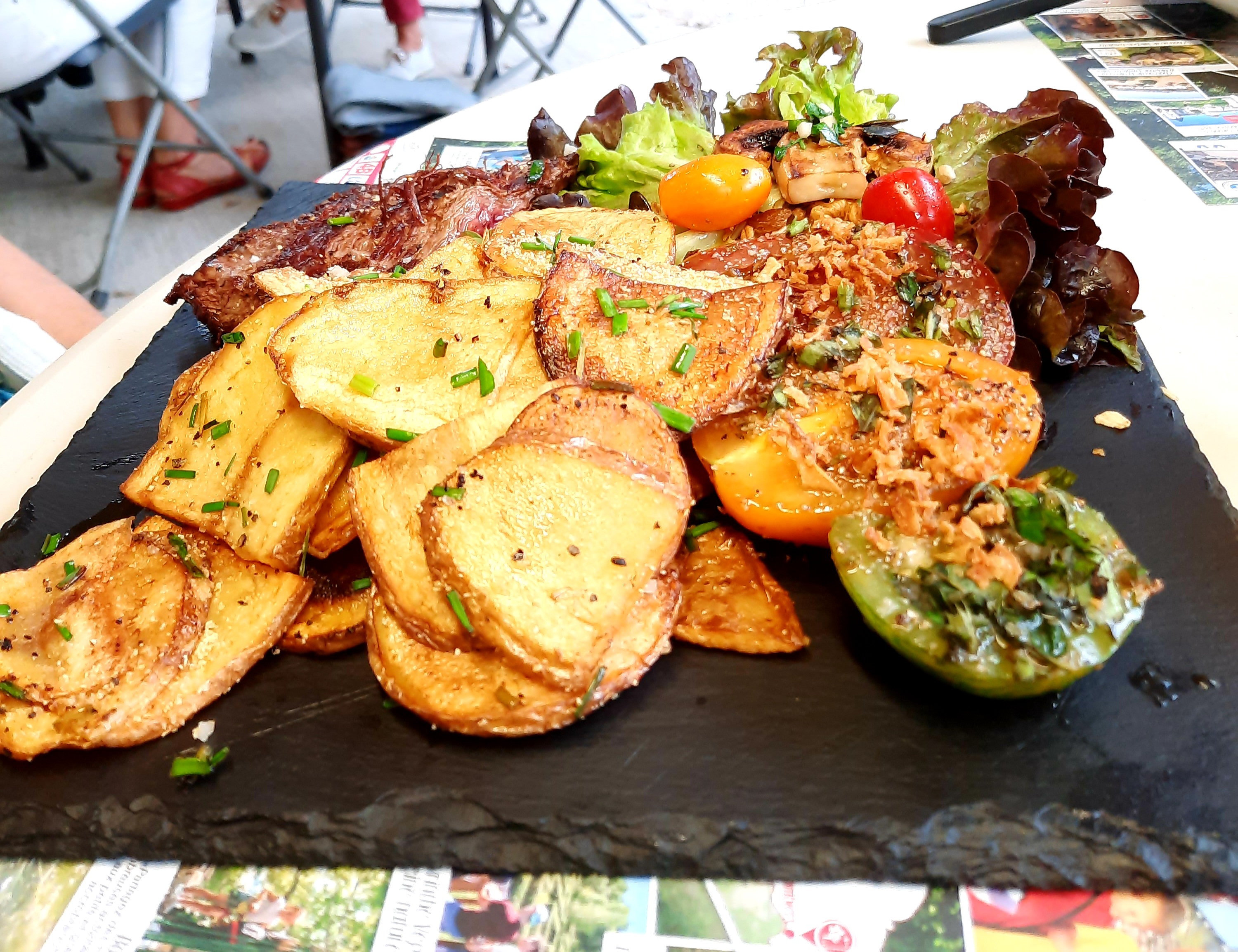 Posté le 03/08/2022 à 07:14"Lieu agréable et patrons sympathiques. Les assiettes sont copieuses et gouteuses. Un service un peu long au final mais nous étions en vacances"